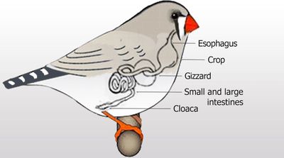 The high metabolism of the finch requires that food constantly be available therefore they have a adaptation referred to as the ‘crop’. The crop is a holding area for food until the stomach is ready to digest it.